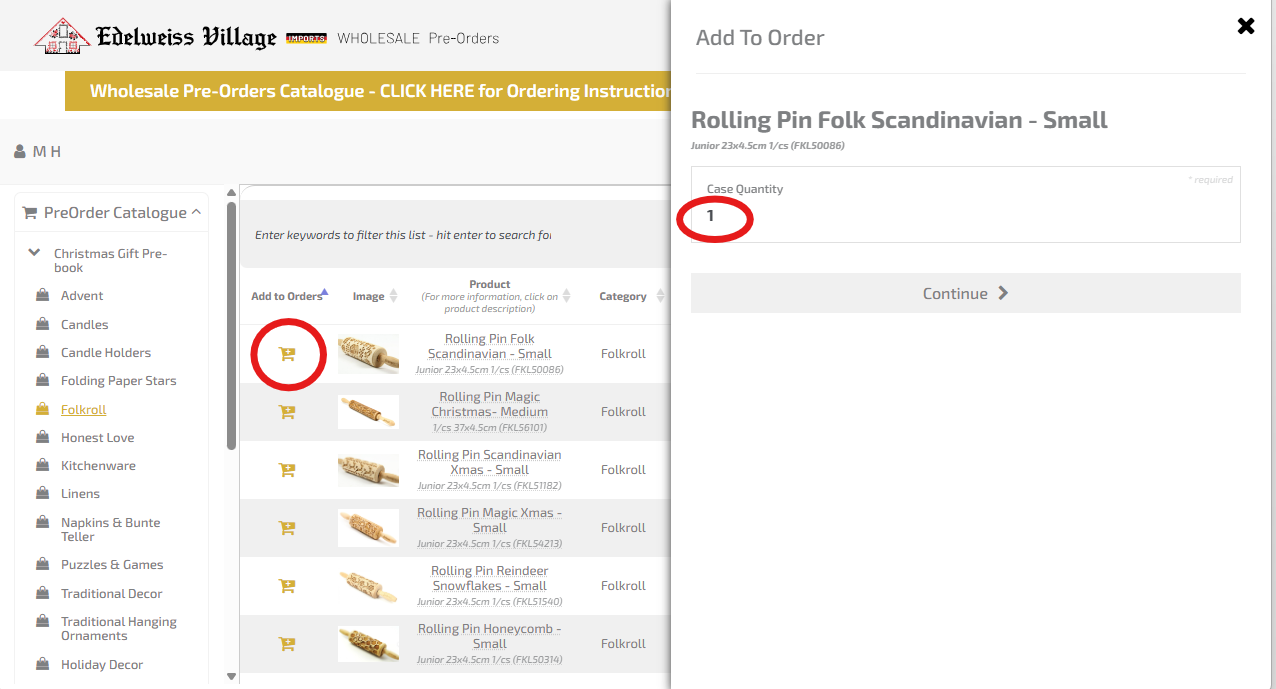 Add the Case Quantity you wish to order in the text field and select continue.