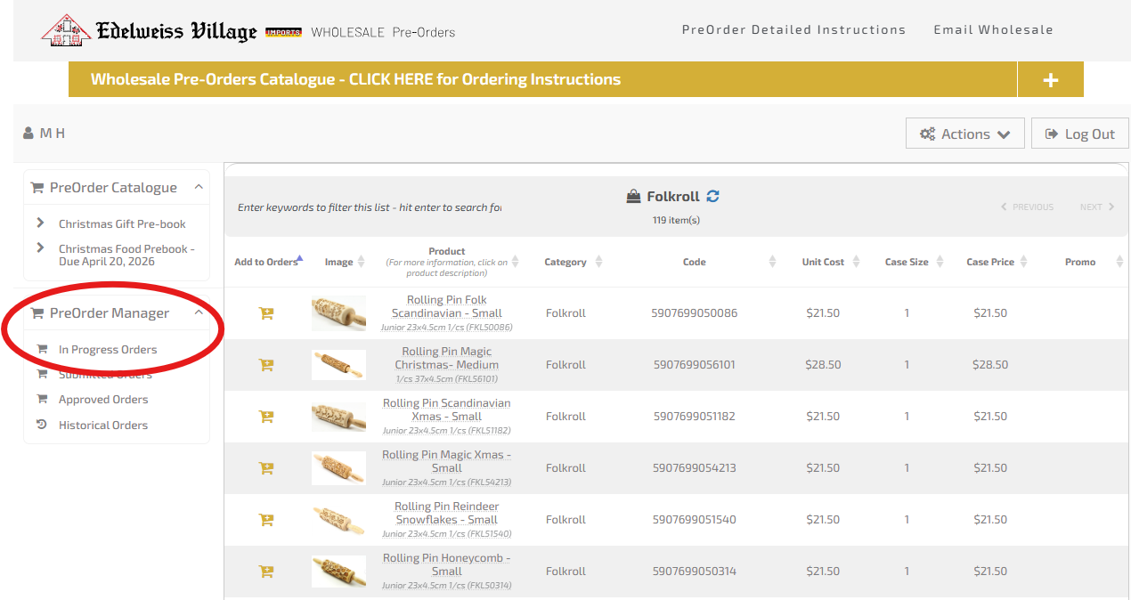 When you are ready to view your preoder, navigate to the preorder manager [lower section - far left side of screen] and select "In Progress Orders"