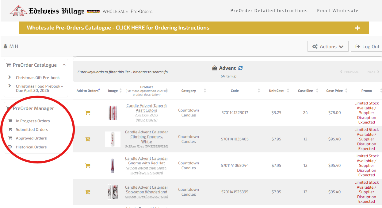 When your preorder has been approved by the Edelweiss team, it will move the approved menu - you will be able to view but not update.