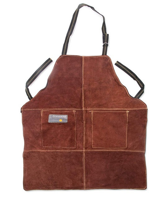This Leather Grill Apron is designed to protect both you from splatters and hot grease. The apron is made from high quality, brown leather. The durable brown suede exterior has a flame retardant lining so you can feel save while you are barbecuing away!