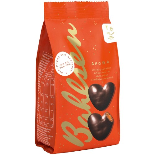 Bahlsen Akora Dark Chocolate Gingerbread Hearts with Fruit Filling (Akora Edelherb) 150g