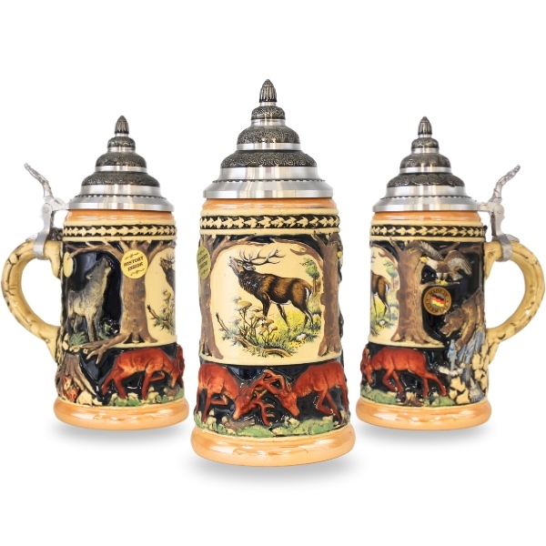 King Wildlife Beer Stein with Pewter Lid, Stag in Front
