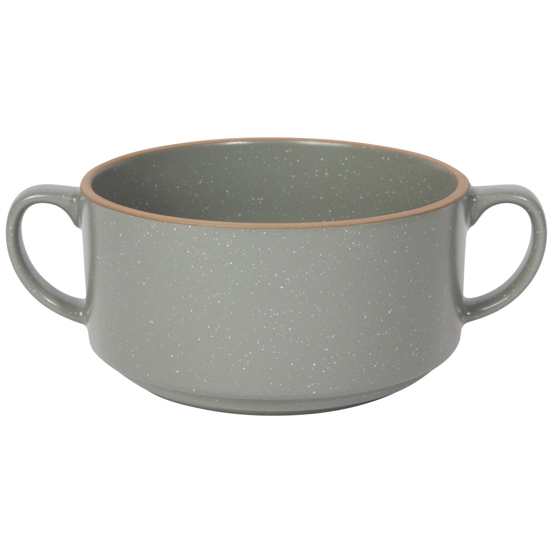 Material: 100% Stoneware. Care Instructions: Dishwasher, microwave, and oven safe to 450F. In muted, neutral tones and with two handles, these bowls turn the heat down on your hands. They also neatly stack together for easy storage.