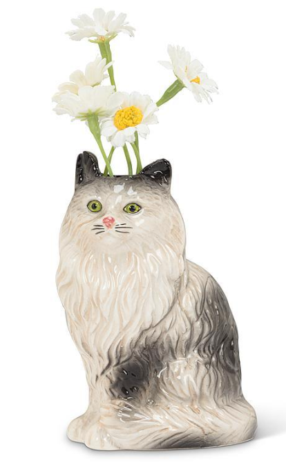 This small vase in the shape of a Persian cat captivates with its lifelike details and warm, rustic colors. It's perfect for small flower stems or green plants and adds a charming, feline touch to shelves, mantelpieces, or Christmas decorations. A delightful piece for animal lovers.