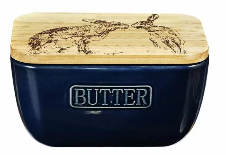 Selbrae House Butter Dish in Blue, Kissing Hare