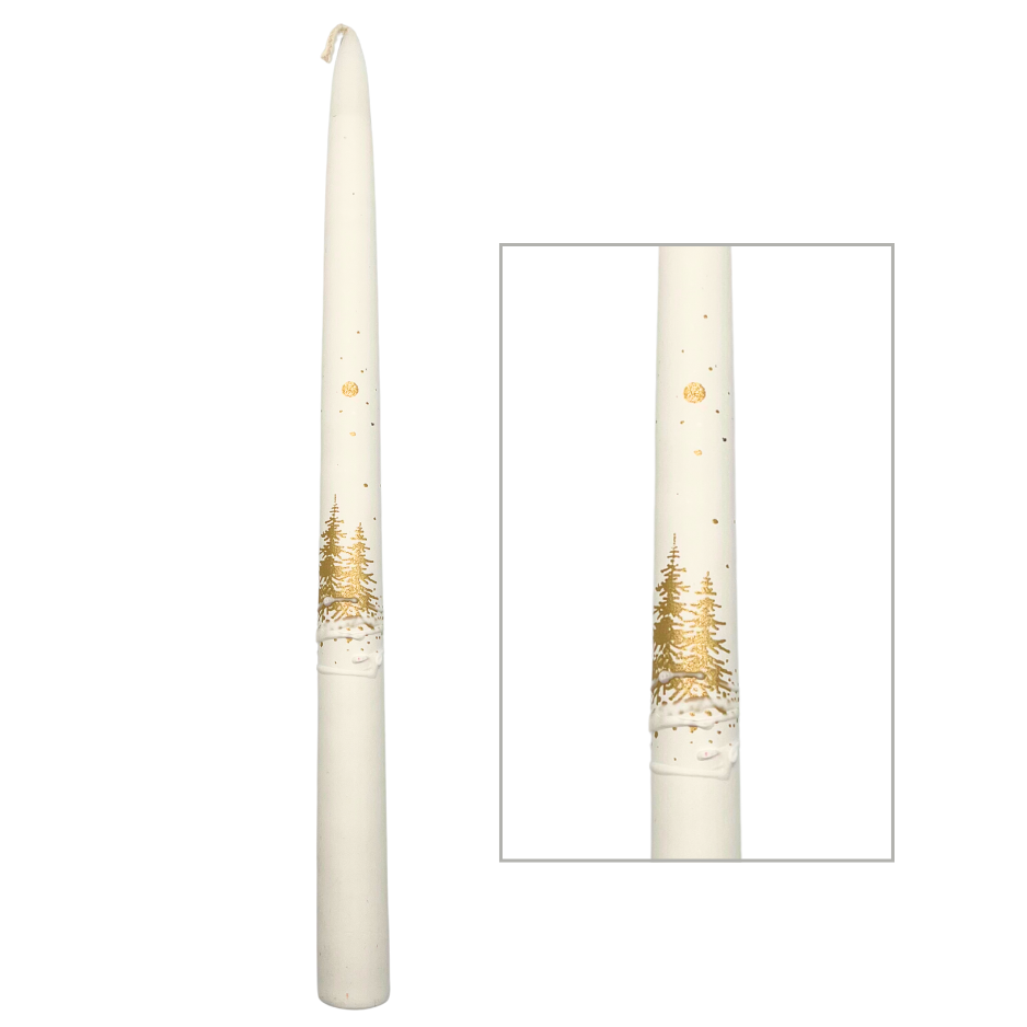 Jakelio Taper Candle Pair White with Gold Trees 30cm