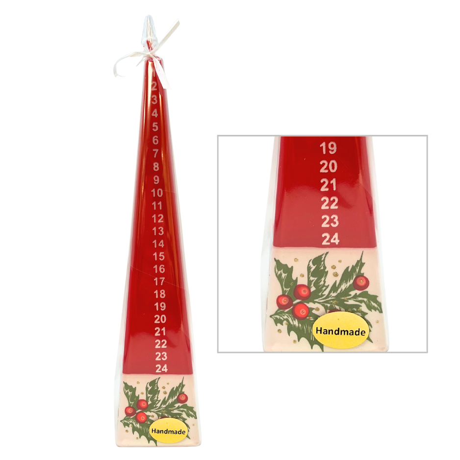 Jakelio Pyramid Advent Calendar Candle Red & White With Holly & Berries 25cm