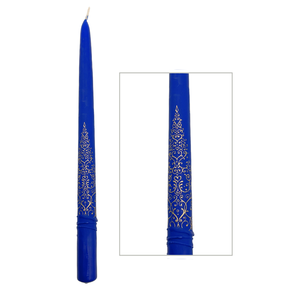 Jakelio Taper Candle Pair Blue with Festive Christmas Tree 30cm