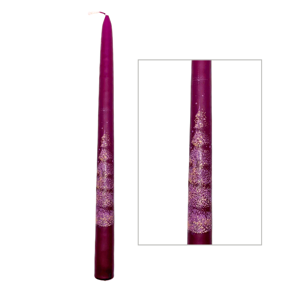 Jakelio Taper Candle Pair Purple with Modern Christmas Tree 30cm