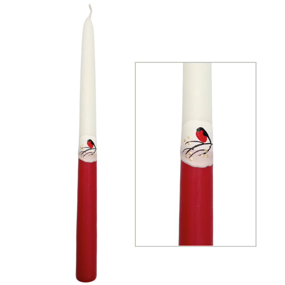 Jakelio Taper Candle Pair Red & White With Robin 30cm