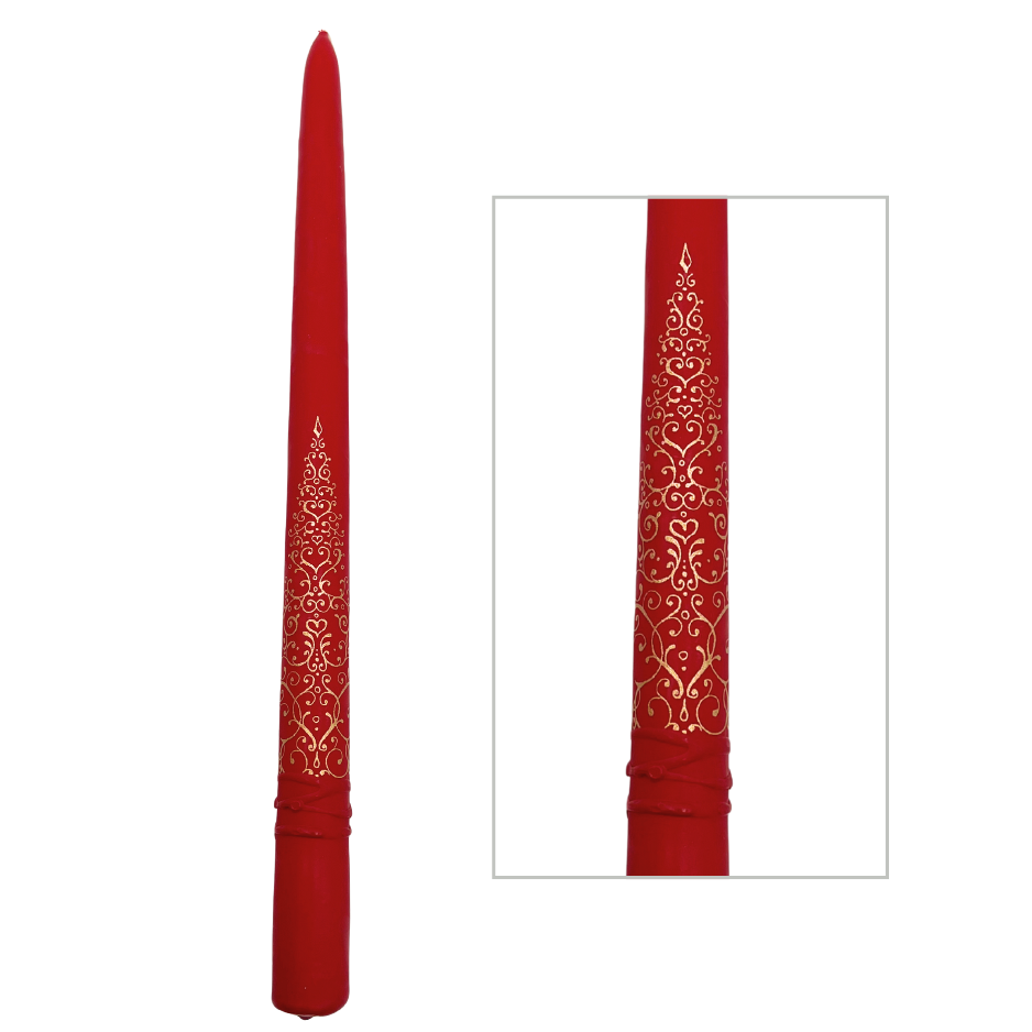 Jakelio Taper Candle Pair Red with Festive Christmas Tree