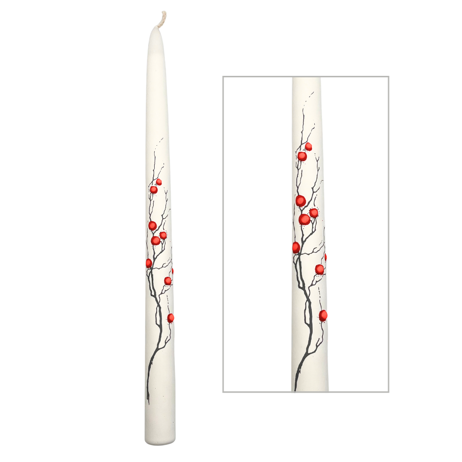 Jakelio Taper Candle Pair White with Berries & Branches 30cm