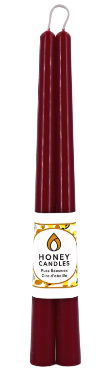 Honey Candles 100% Pure Beeswax Taper Candles 1 Pair in Burgundy