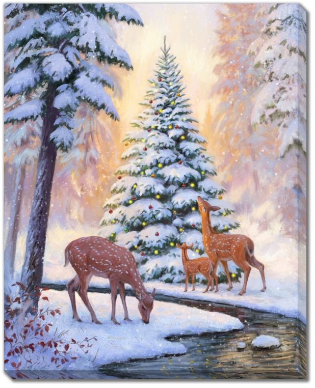Canvas Art - Christmas Tree Deers, with three Deers - 16x20"