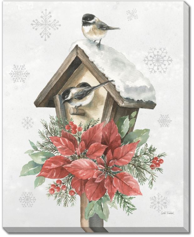 Canvas Art - Festive Décor, two tits in the Birdhouse - 16.20"