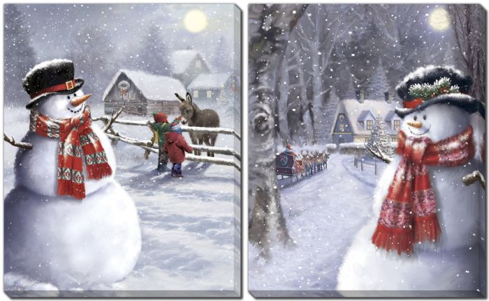 Canvas Art - Snowman Farm - 16x20" - 2 Asst'd
