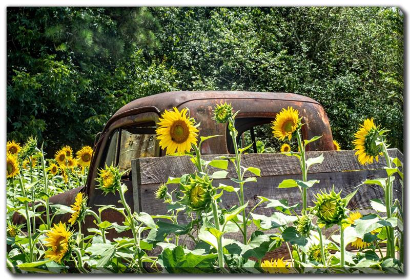 Canvas Art - Truck in Field of Sunflowers - 16x20"