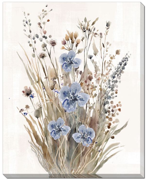 Canvas Art - Wild Grasses, with four blue Flowers