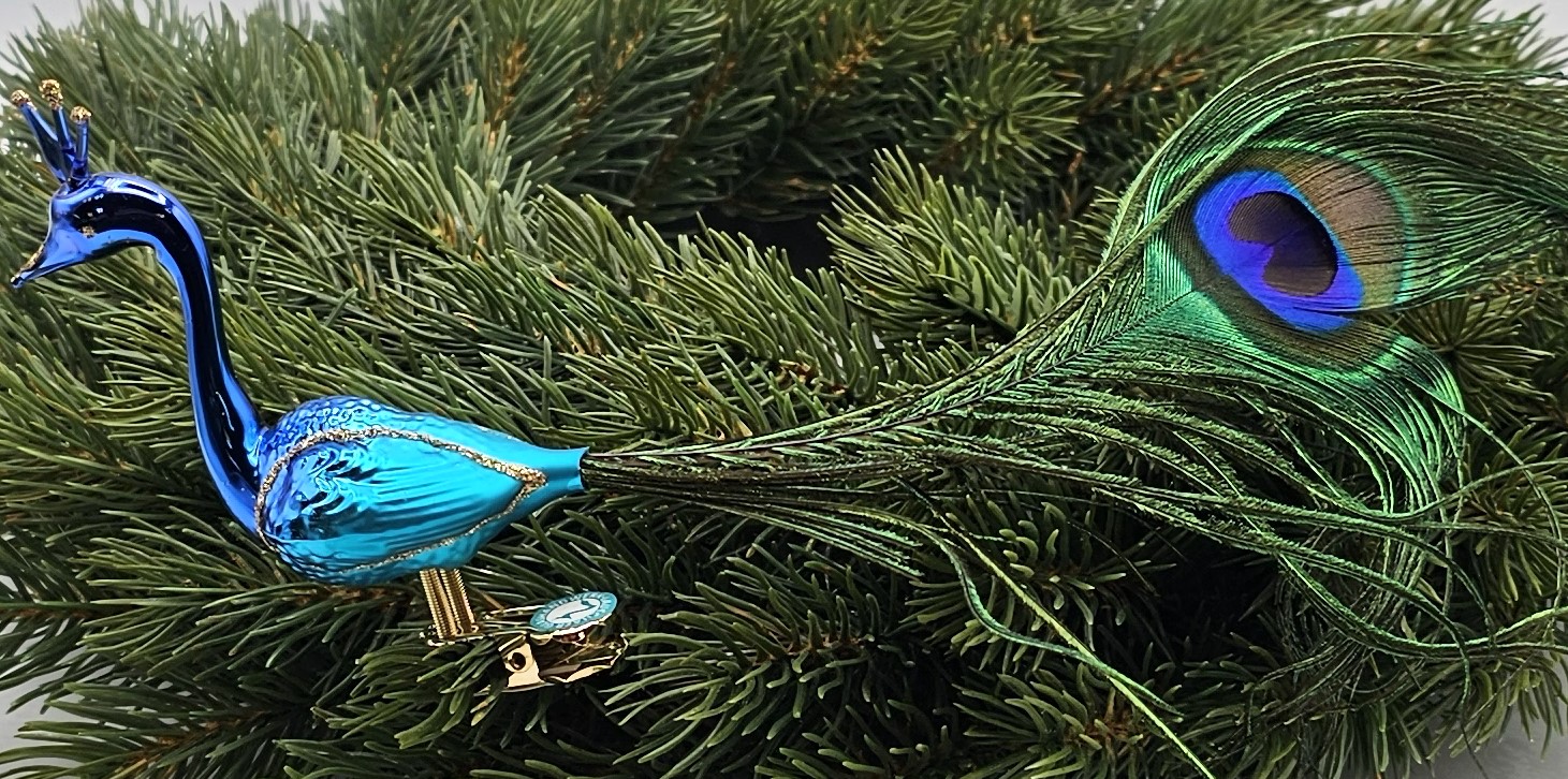Clip-on small Peacock with Crown Matte turquoise, Glass