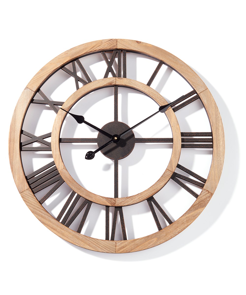 A wagon wheel-inspired silhouette makes a great addition to any room looking for western charm. Roman numerals clock face. Requires 1 AA battery.