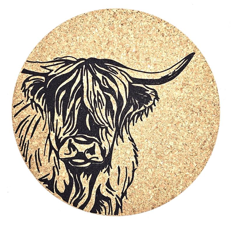 Cork Place Mat Ø 9.8", Highland Cow
