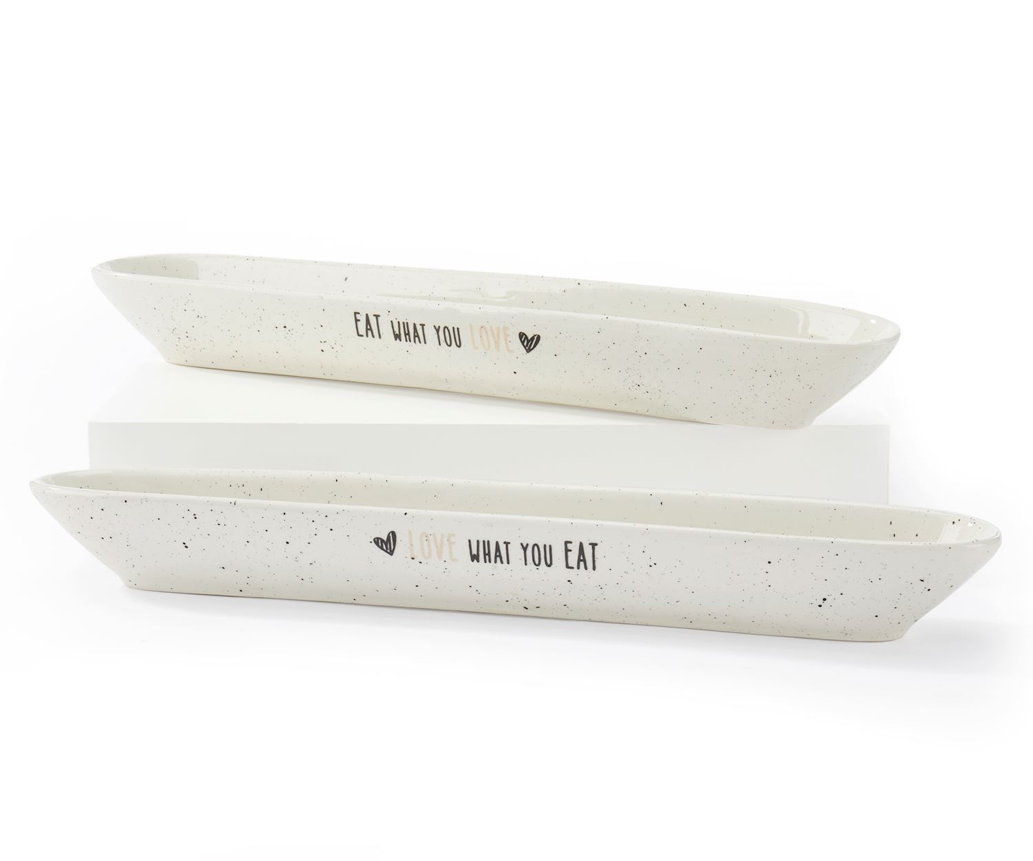 Available in 2 different motifs: EAT WHAT YOU LOVE or LOVE WHAT YOU EAT.