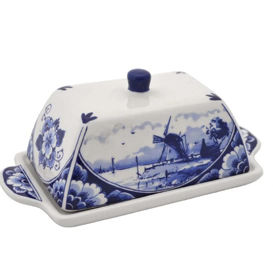 DB Delfts Blue Butter Dish - Windmill Canal Scene