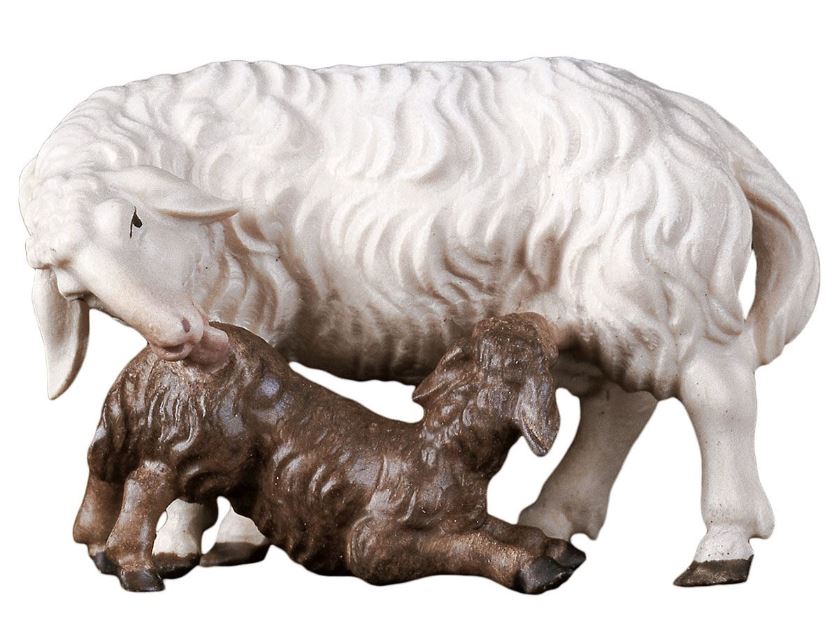 Figures 10cm Sheep with suckling Lamb - Colored - Comet Nativity Collection