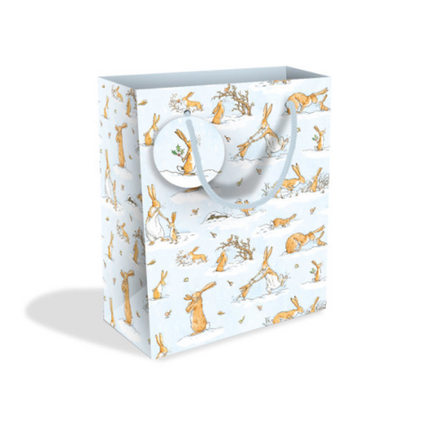 With a delicate powder blue background and an adorable pattern of two bunnies playing in the snow, this adorable gift bag is absolutely perfect for your loved ones' Christmas presents this festive season.