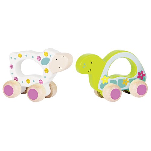 Goki Children's Wooden Push Along Animals Turtle and Sheep
