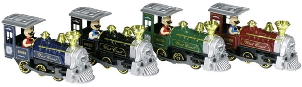 This colourful toy train, complete with light and sound, lets little engineers go on exciting adventures. Its sturdy die cast metal design ensures the locomotive can withstand plenty of play and last for years. Choose between red, blue, green, or black. With the handy pull-back mechanism, the train moves forward on its own after being pulled back. The cheerful 'choo-choo' sound, flashing light, realistic valve gear movement, opening doors, and the run 'n' shake captain make every train journey extra fun.