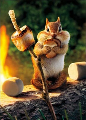 Greeting Card Birthday - Chipmunk Roasts Marshmallow APS