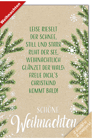Still und starr ruht der See, Weihnachtlich glänzet der Wald: Freue dich, Christkind kommt bald! Schöne Weihnachten
