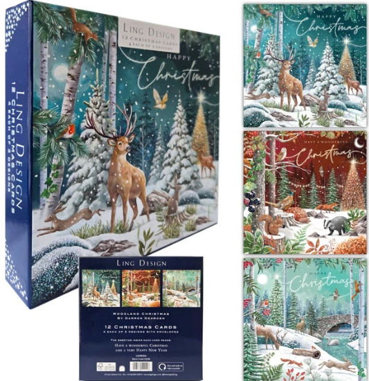 Box Set of 12 Christmas cards, 4 each of 3 Designs and envelopes