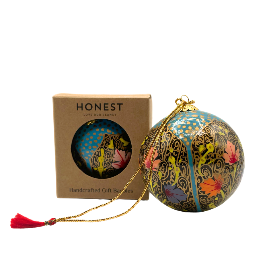 "Crafted in Kashmir, Cherished Worldwide." These beautiful, handcrafted papier-mâché ornaments are made using recycled and plant based materials in Kashmir by local artisans. Their aim is to empower artisans, support the community in Kashmir, and create a product that is ethical and sustainable for the planet.
