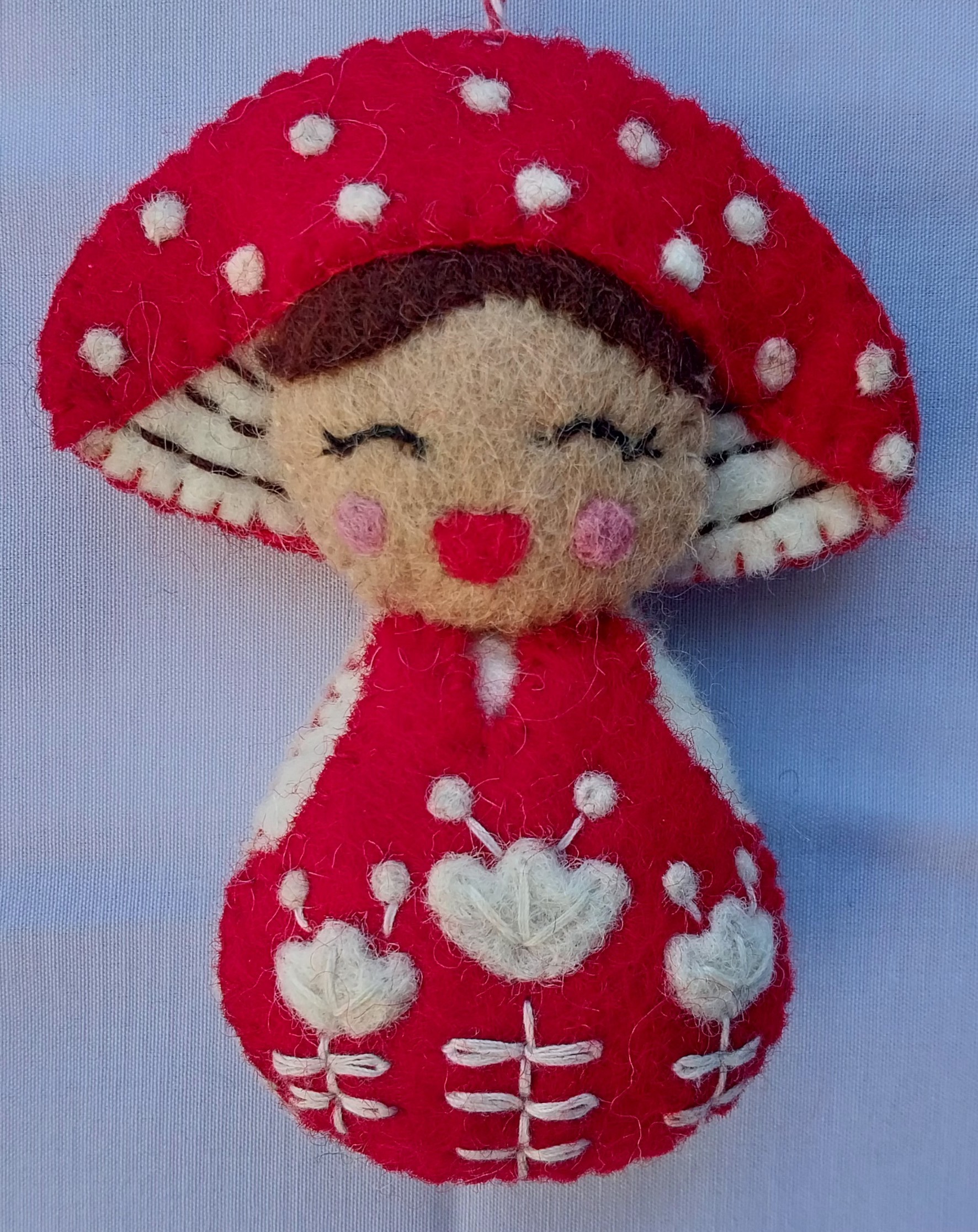 Hanging Ornament Felted Folk Mushroom VC