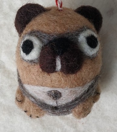 Hanging Ornament Felted Pug VC