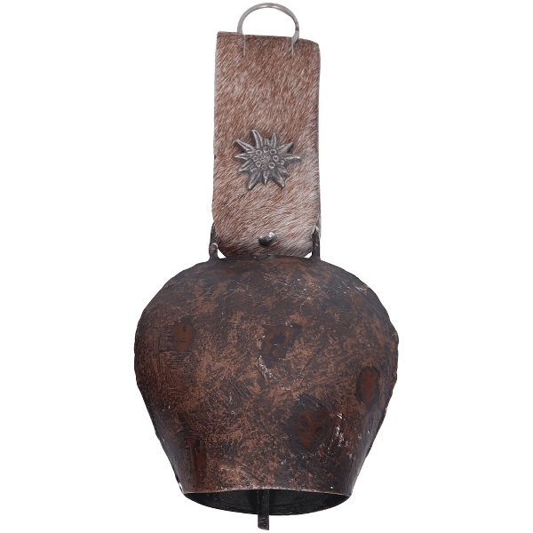 Hanging Ornament Large Cowbell dark gold with Edelweiss