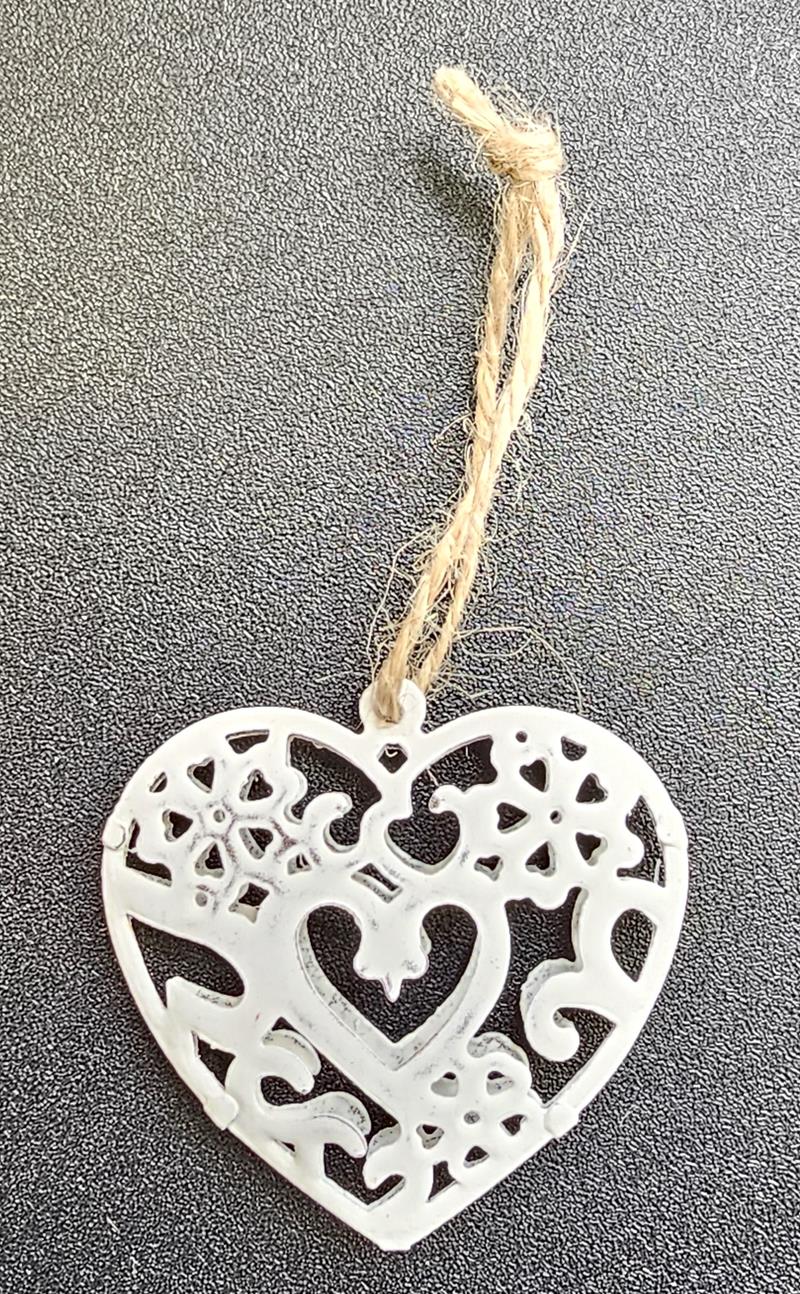 Hanging Ornament White Metal Hearts - piece