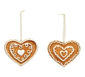 Hanging Ornament Porcelain Gingerbread Heart 2 Assorted