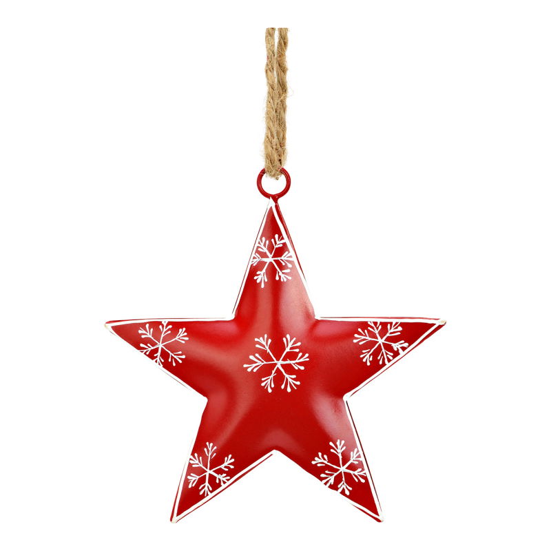 G. Wurm Hanging Ornament Red Metal Star with Snowflakes