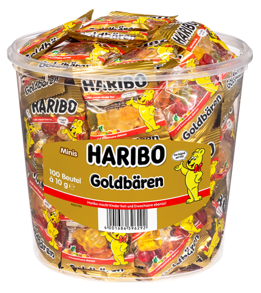 Gold Bears have been Haribo's bestseller for over 100 years. Each package has an assortment of pineapple, apple, strawberry, raspberry, orange, and lemon flavours.
