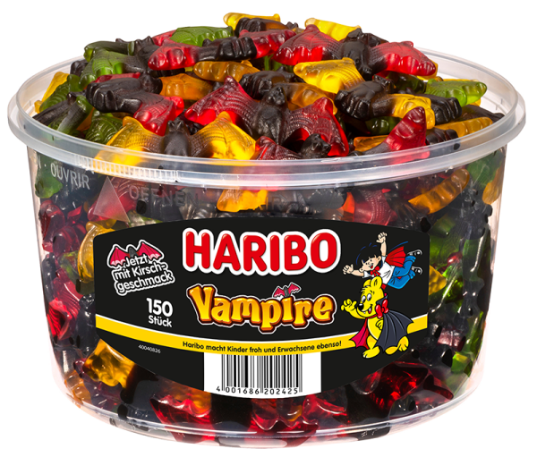 A popular combination of spicy, soft licorice in a fun vampire shaped fruit gum that is paired with apple, cherry, and lemon flavours.