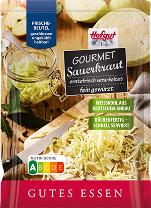 Sauerkraut, just heat and it is ready to eat. Suitable for vegetarian and vegan diets.