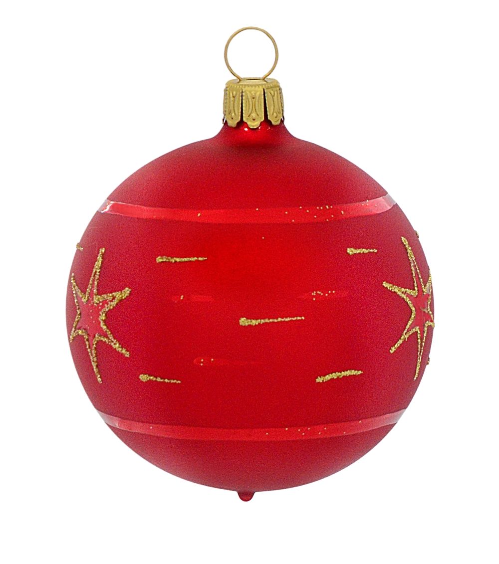 Glasblaeserei Thueringer Ball Red with golden star track Set of 4