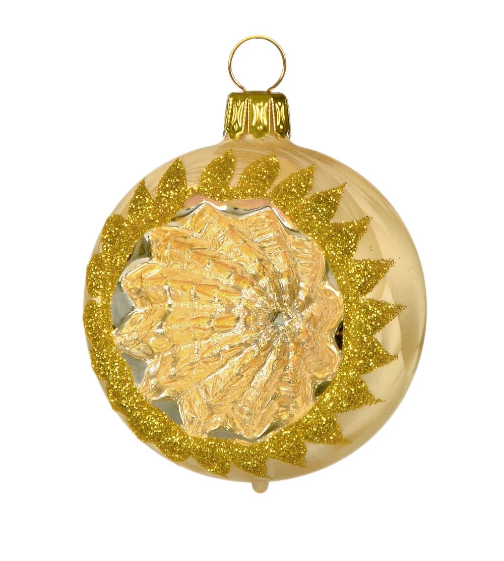 Glasblaeserei Thueringer Ball with puncture - set flower - ice champagne - Set of 4