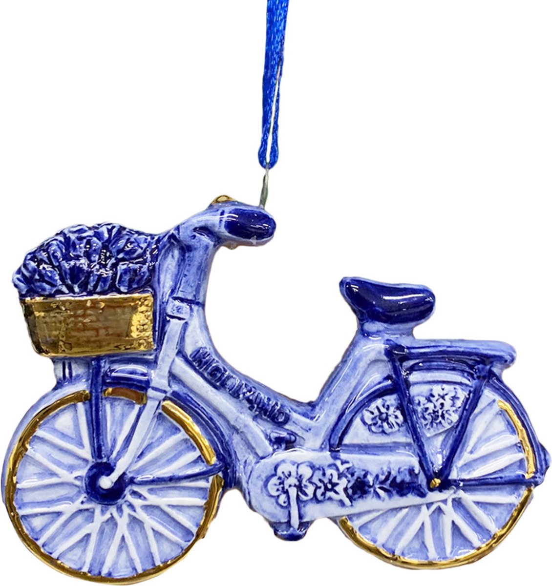 HOrn Christmas Tree Ornament, Gold/Blue Bike