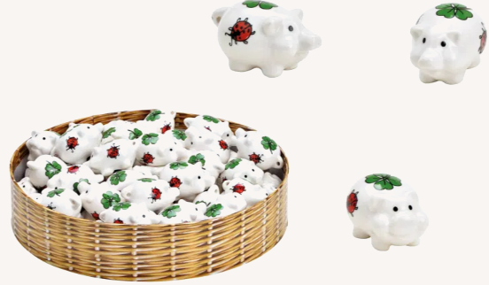HOrn Piggybank Mini Porcelain Pig with Cloverleaf & Ladybug - 3 Assorted