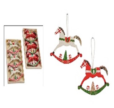 Hanging Ornament Wooden Rocking Horse - 2 Assorted