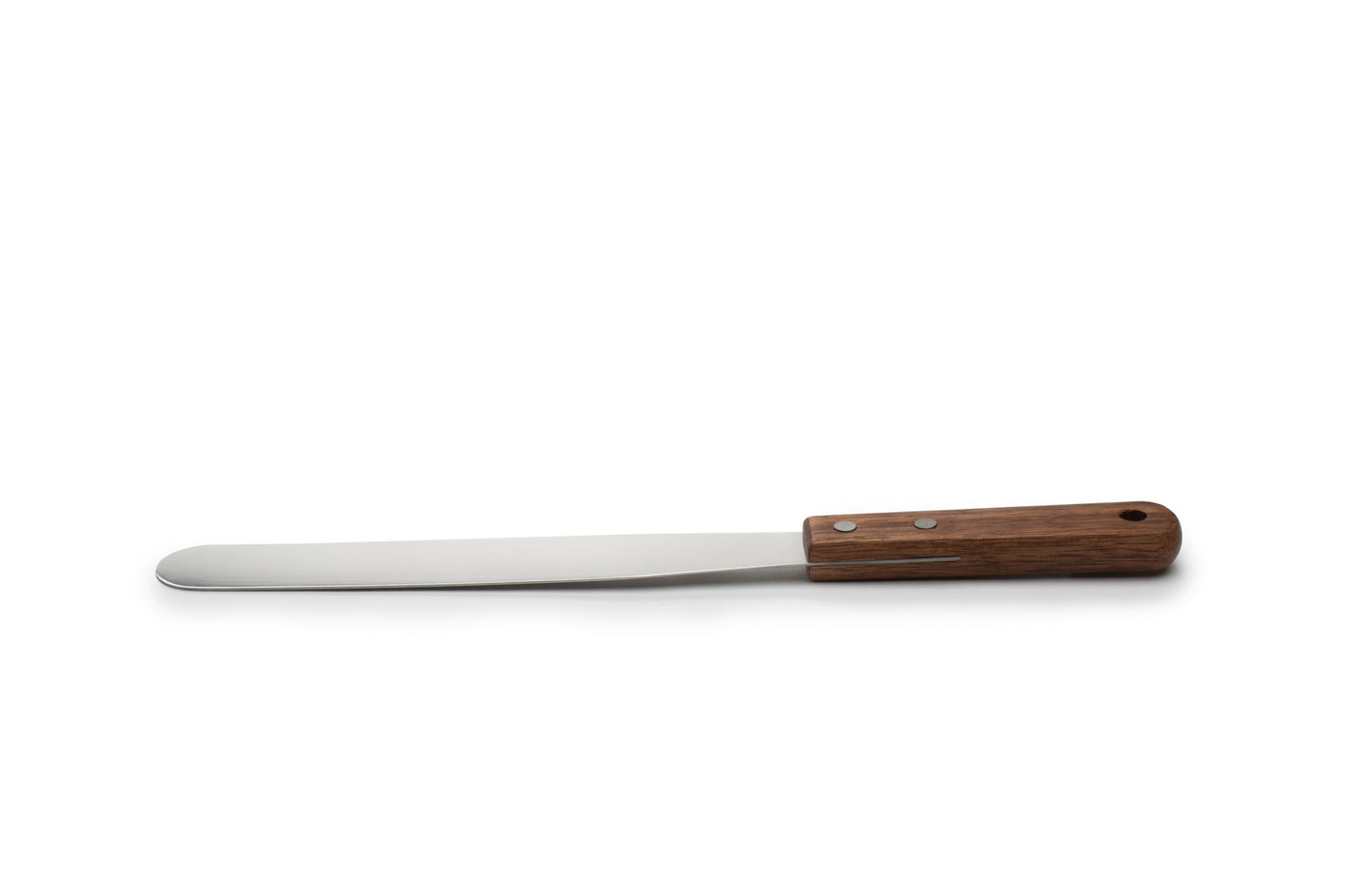 Flat, sturdy blade allows even flexibility and rounded tip allows for cleaner work
